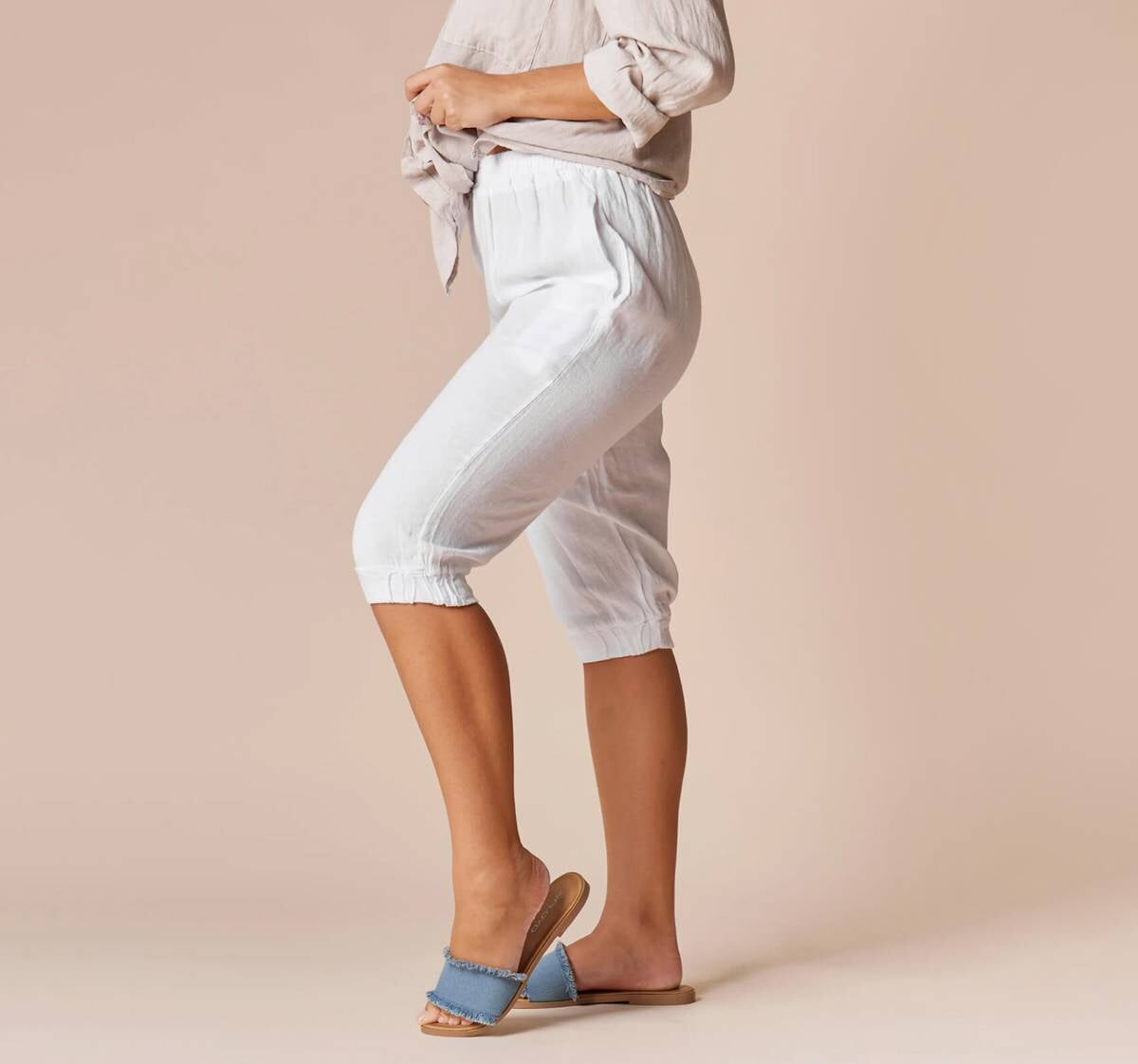 Lin er kjent for sin evne til å puste godt, og er lett materiale som gjør at capribuksen føles veldig behagelig å bruke på varme sommerdager. Materialet lin er slitesterkt, men det er svært viktig at det blir tatt godt vare på - følg vaskeanvisning nøye, så vil du ha plagget i flere år fremover.