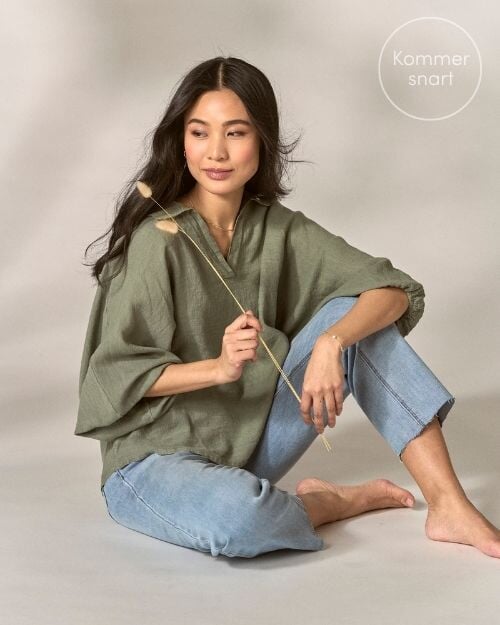 Linbukse til hverdags trenger ikke kombineres med mer lin. Miks en lyserosa wide-leg linbukse med en oversized skjorte, eller en olivengrønn lintopp med lyse jeans – enkelt, allsidig og komfortabelt fra morgen til kveld.