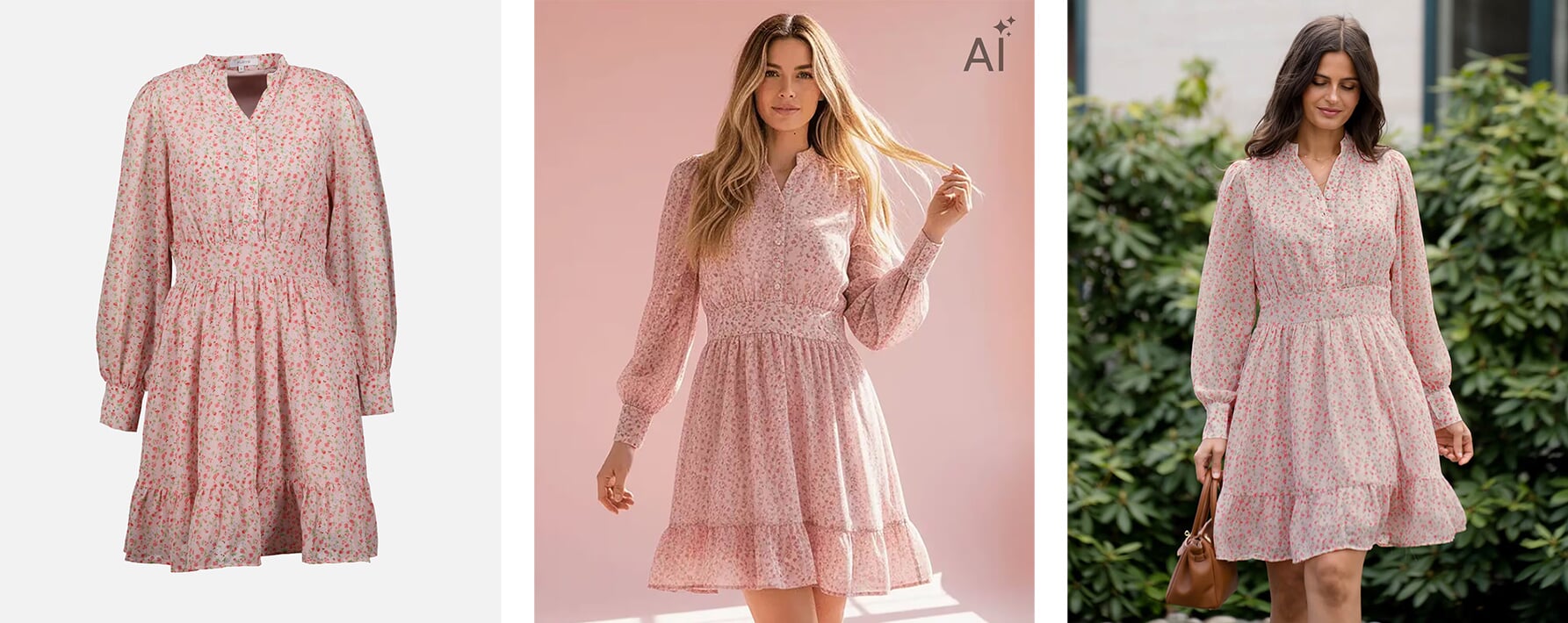 - FLOYD prioriterer og vil fortsette å prioritere bruk av ekte modeller i produktbilder. Kunstig intelligens brukes kun som et supplement i enkelte tilfeller, for eksempel når vi ikke har vareprøver i riktig farge tilgjengelig i tide til fotografering.