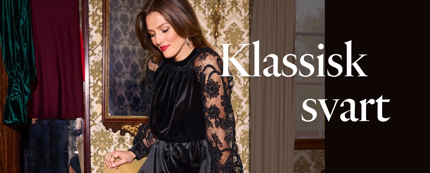 Usikker på hva du skal velge? Gå for svart! Med riktig styling blir et svart antrekk aldri kjedelig, men derimot sofistikert og elegant. I tillegg kan en svart julekjole enkelt brukes til flere anledninger ved å bytte ut tilbehør som sko og smykker. Til og med noe så enkelt som å bytte frisyre vil endre uttrykket - gå for romantisk løst hår til julaften, og stram opp looken til nyttårsfeiring eller julebordet.